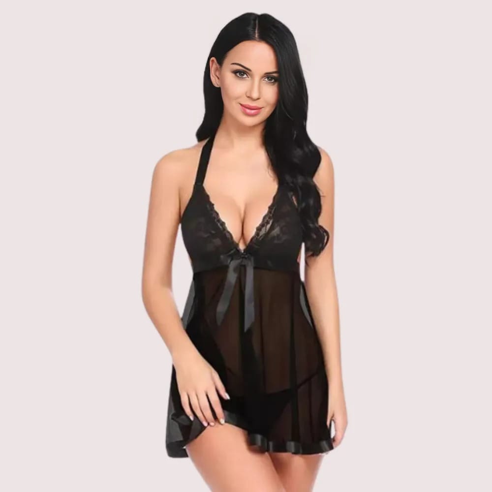 Our Flirty Sheer and Lace Chemise in Black will take you to a world of playful charm. It’s a seductive mix of flirty style and classic elegance. This beautiful chemise is meant to make you feel sure of yourself, attractive, and completely appealing. This chemise’s sheer and lace details give it a touch of mystery and sexiness, making for an alluring silhouette that makes you want to know more. The flirty design is both fun and classy, making it perfect for people who like underwear that is both charming and seductive.