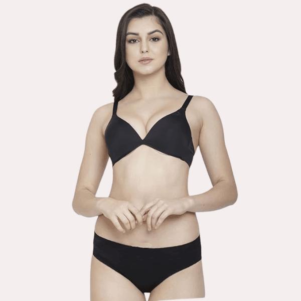 Experience effortless elegance with this non-padded plunge bra and panty set. The plunge bra features a deep neckline for a chic, low-cut look, while the soft, unpadded cups offer a natural shape and comfort. The matching panty complements the bra with a sleek, minimal design. Made from soft, breathable fabric, this set ensures all-day wearability and a flattering fit. Perfect for everyday wear or special occasions, it combines style with simplicity.